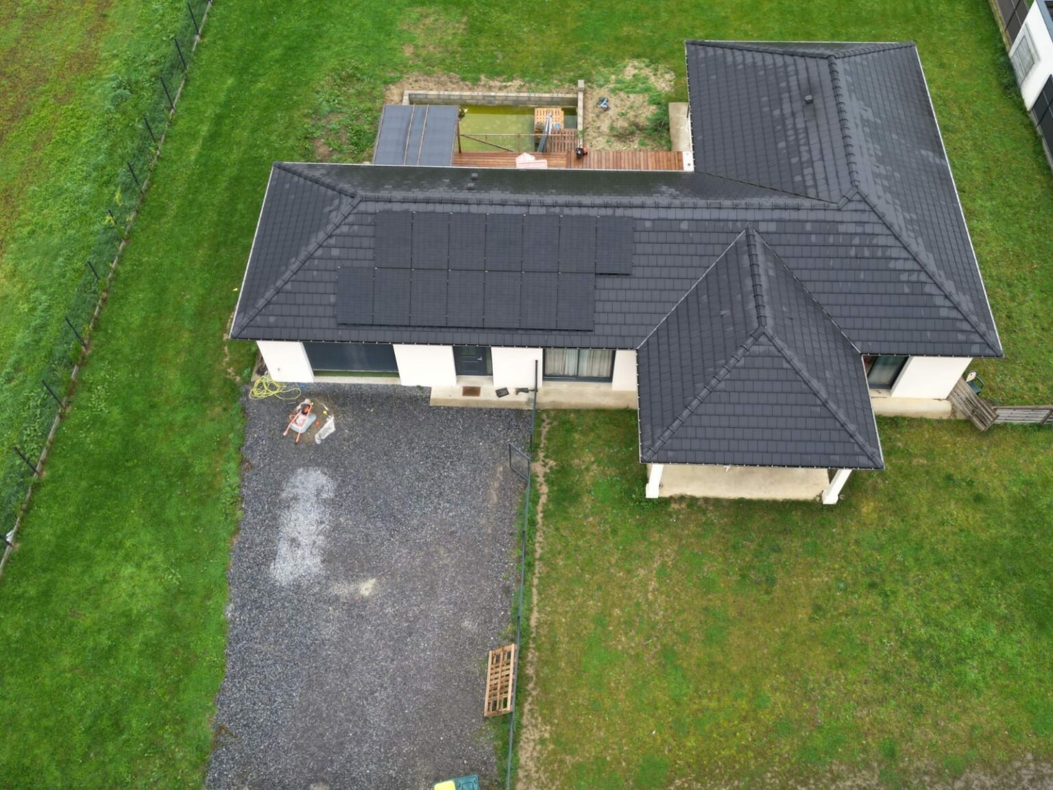 Après étude des besoins énergétiques de notre client nous avons  réalisé l’installation de 14 panneaux solaires Jinko Solar de dernière génération en surimposition.